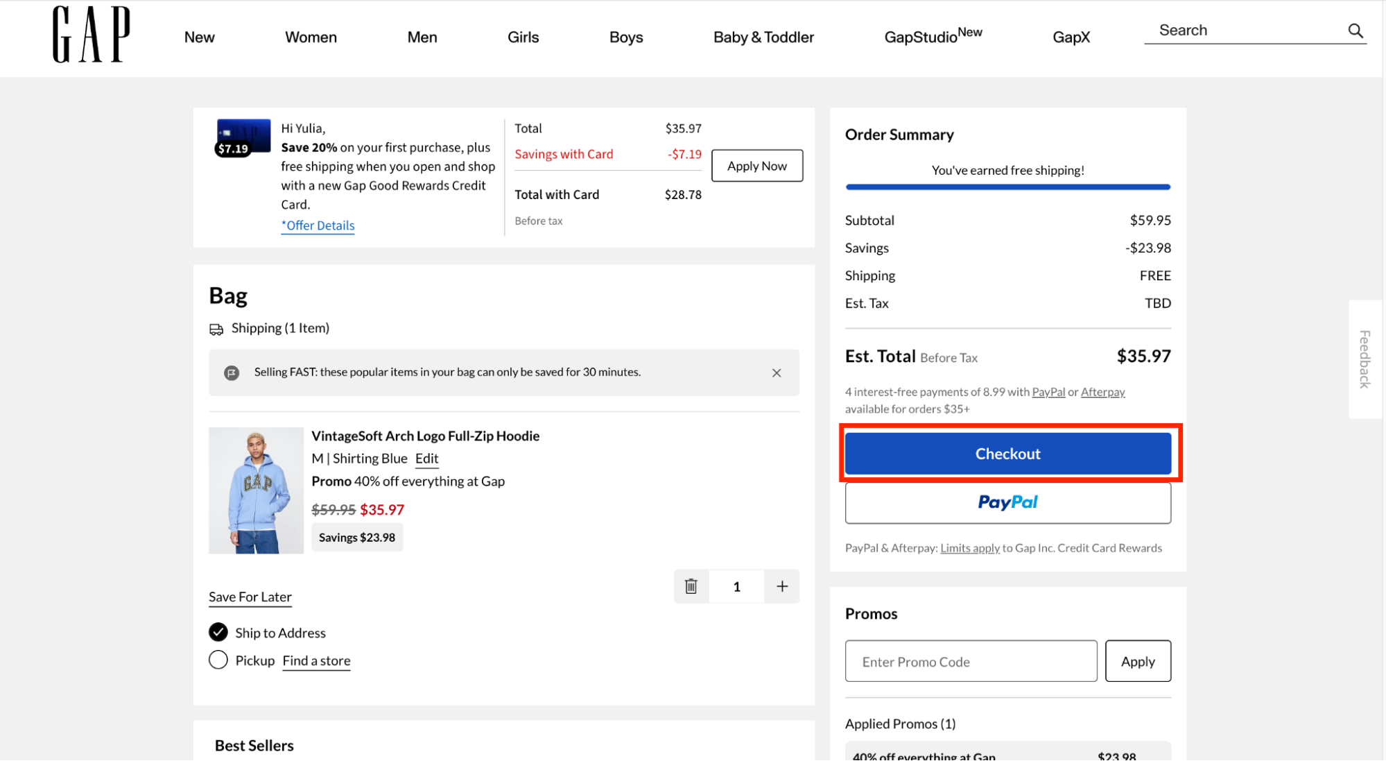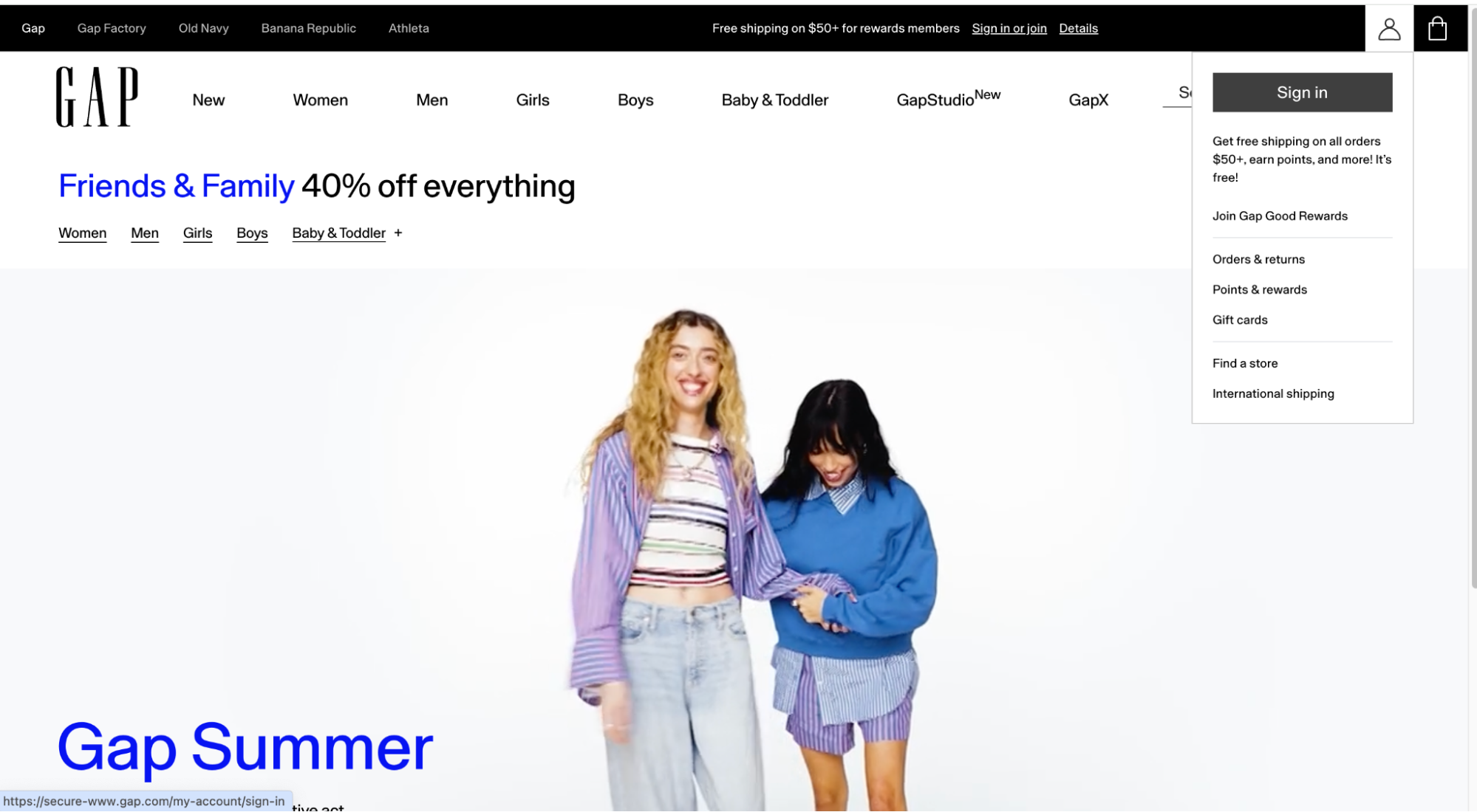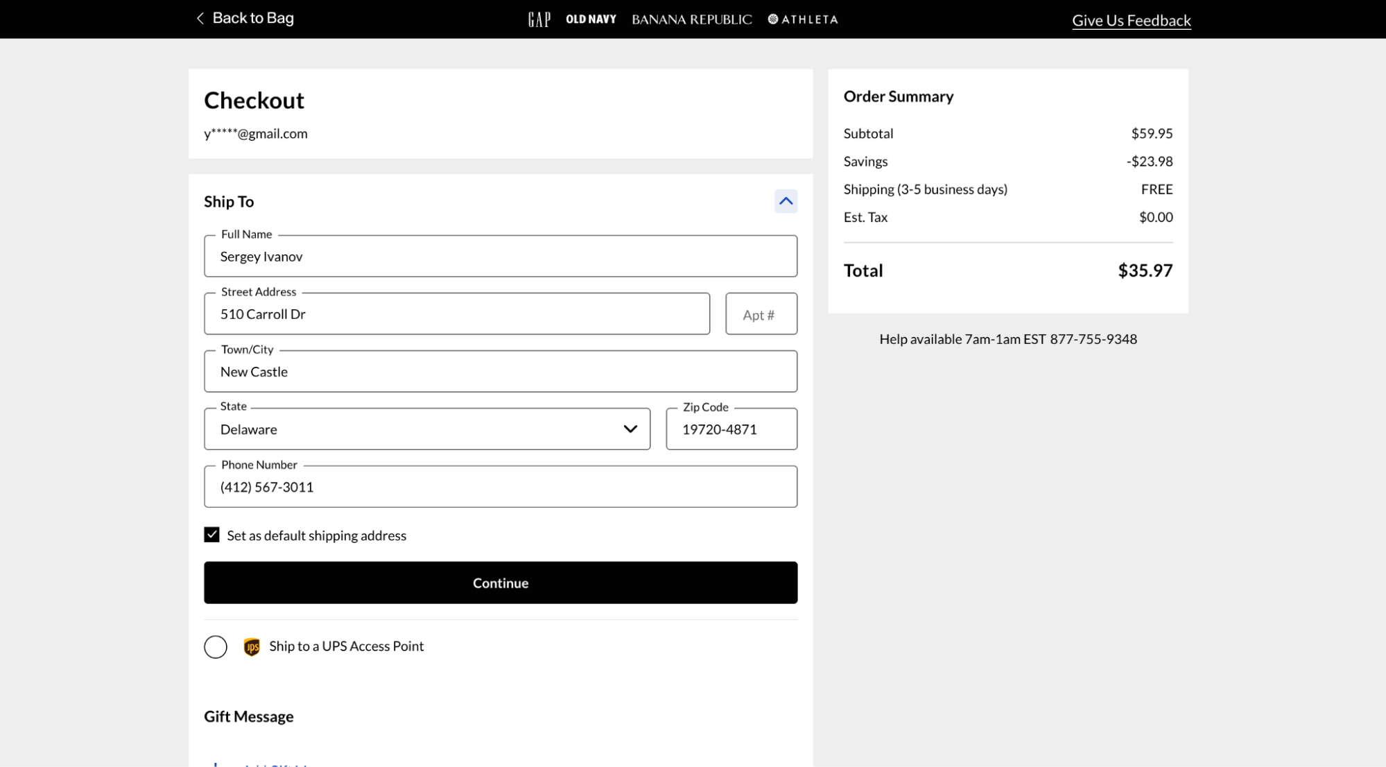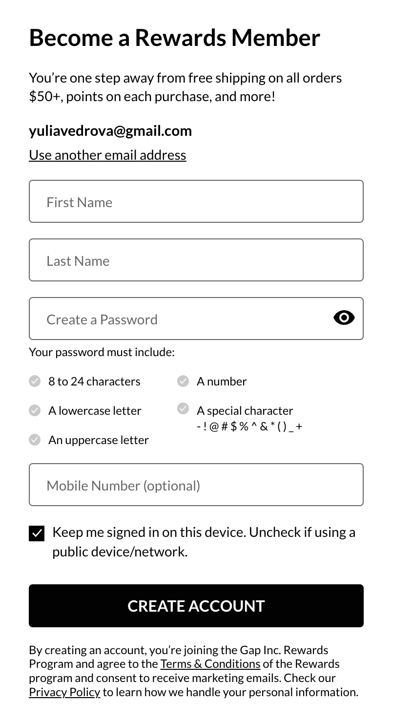 Все, ваш аккаунт создан. И помните, что ваша учетная запись будет единой для всех остальных магазинов из семейства Gap.