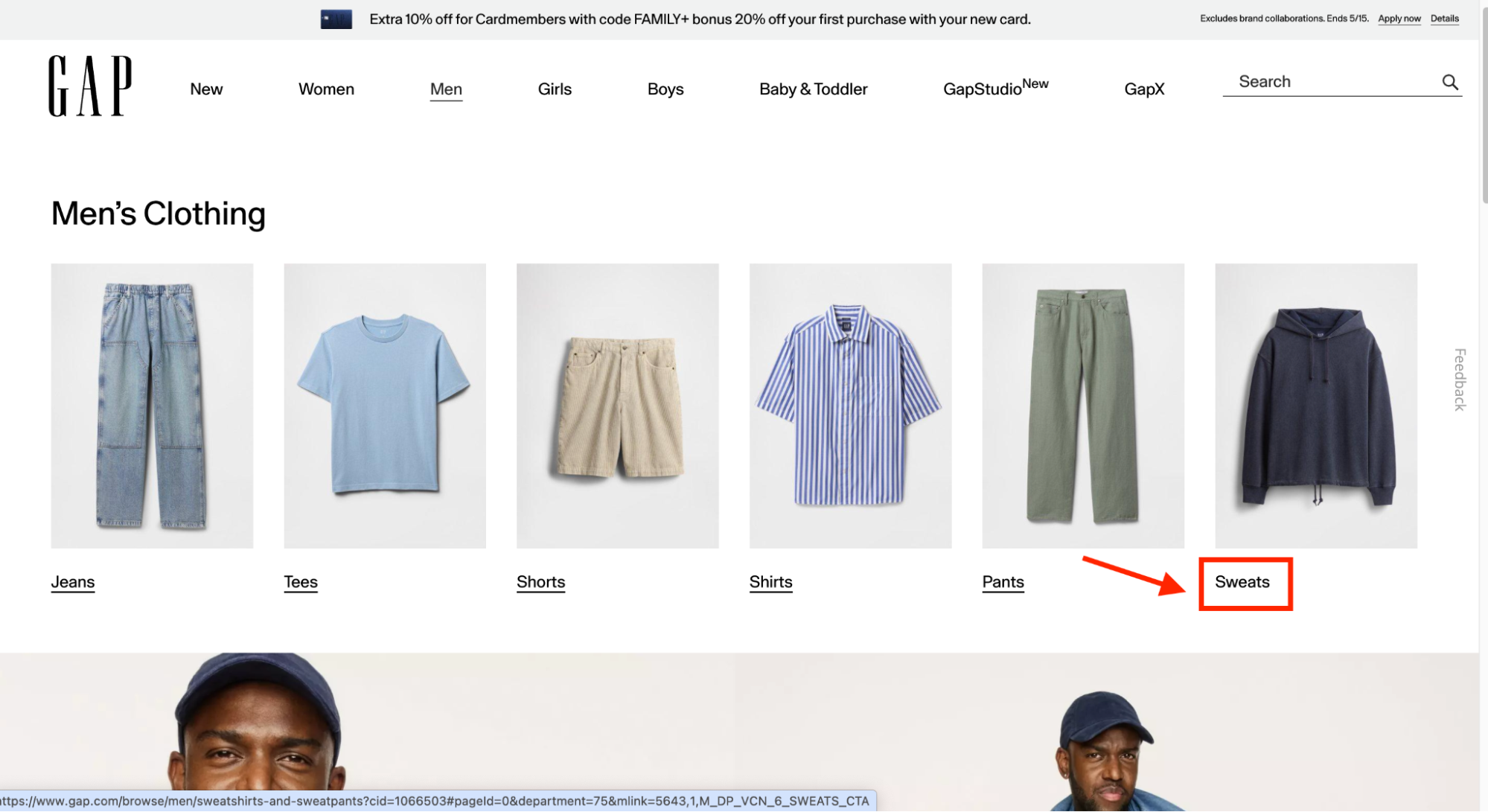 Далее выбирайте нужную категорию, например, Sweats (толстовки)