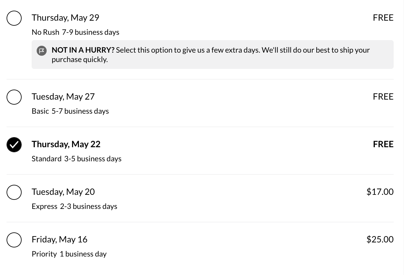 Ниже выберите способ доставки и срок. Не забывайте, что на сайте концерна Gap при стоимости заказа свыше $50 вы получаете гарантированную бесплатную доставку по США.