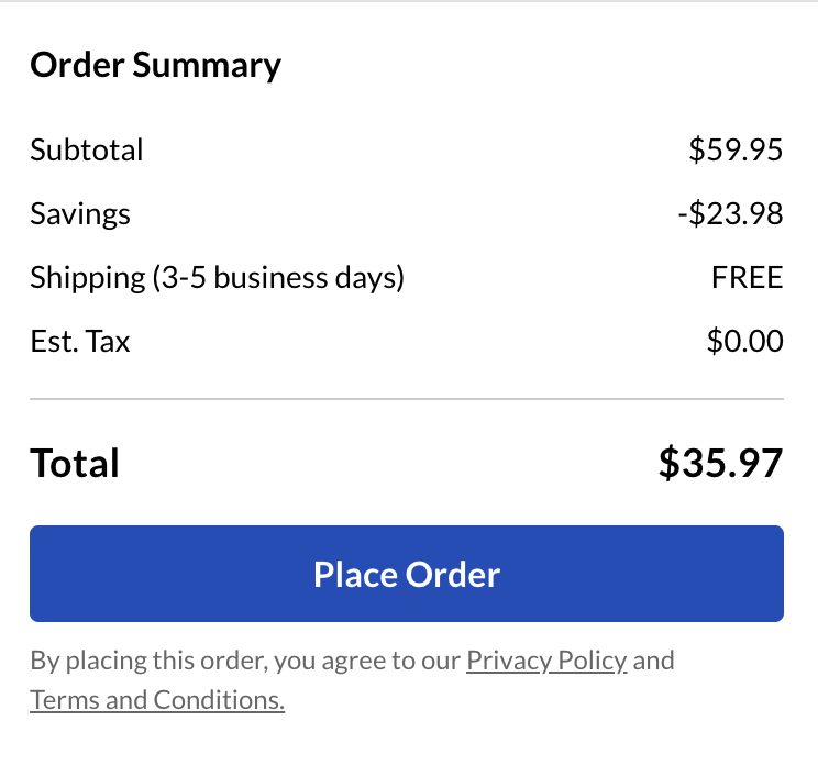 Проверьте сумму заказа (в нашем примере магазин автоматически применил промокод со скидкой 40% на весь ассортимент).