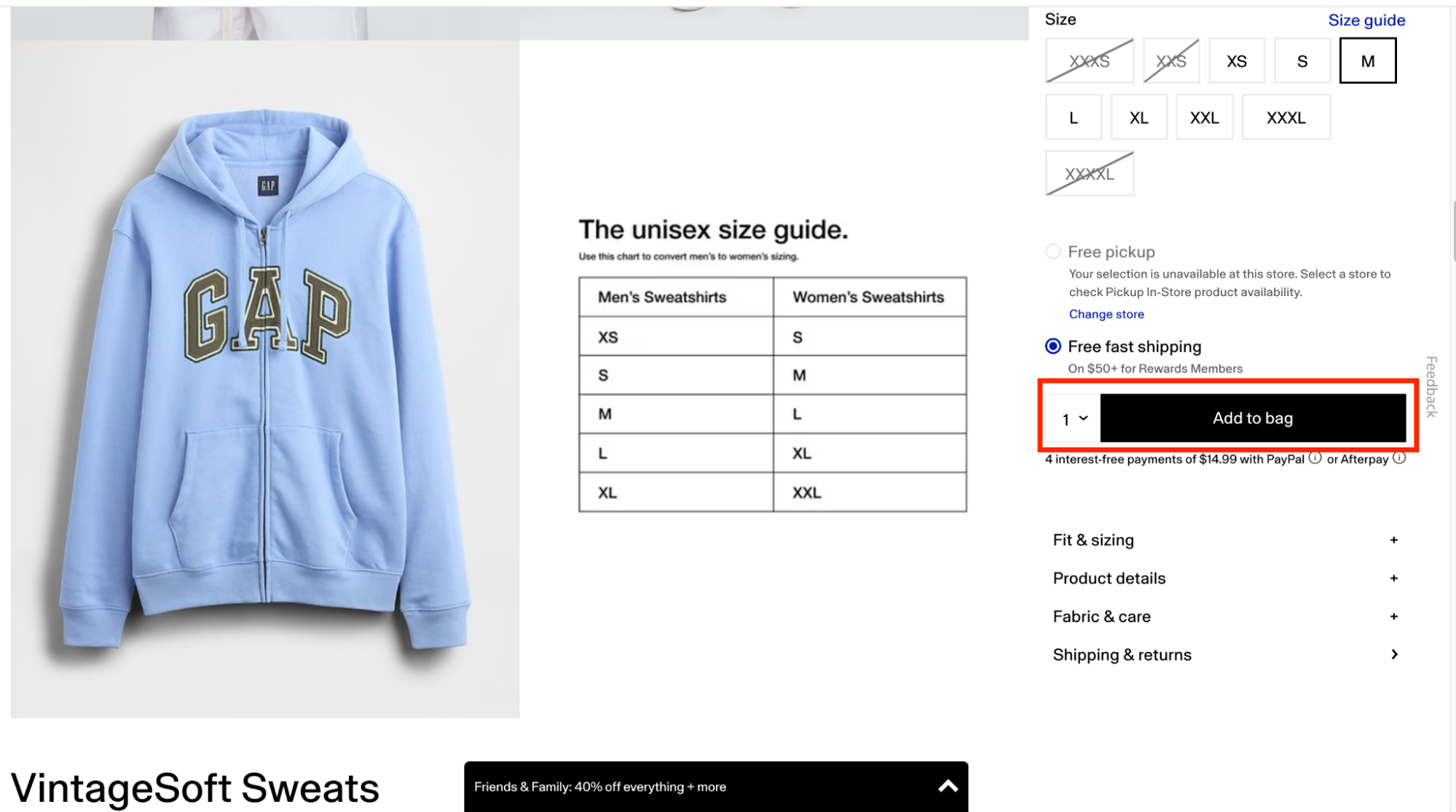 После того, как вы выбрали цвет и размер, нажмите «Add to Bag». Обязательно проверьте количество слева от черной кнопки «Add to Bag»