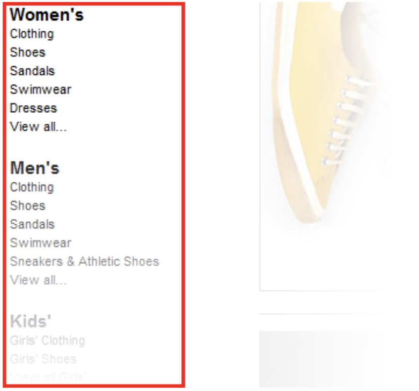 Для каждой группы товаров вы будете видеть различные фильтры. Например, можно указать, что вы хотите посмотреть только товары определённых брендов (отметив эти бренды галочками) или что вас интересуют туфли исключительно 8 размера и так далее.