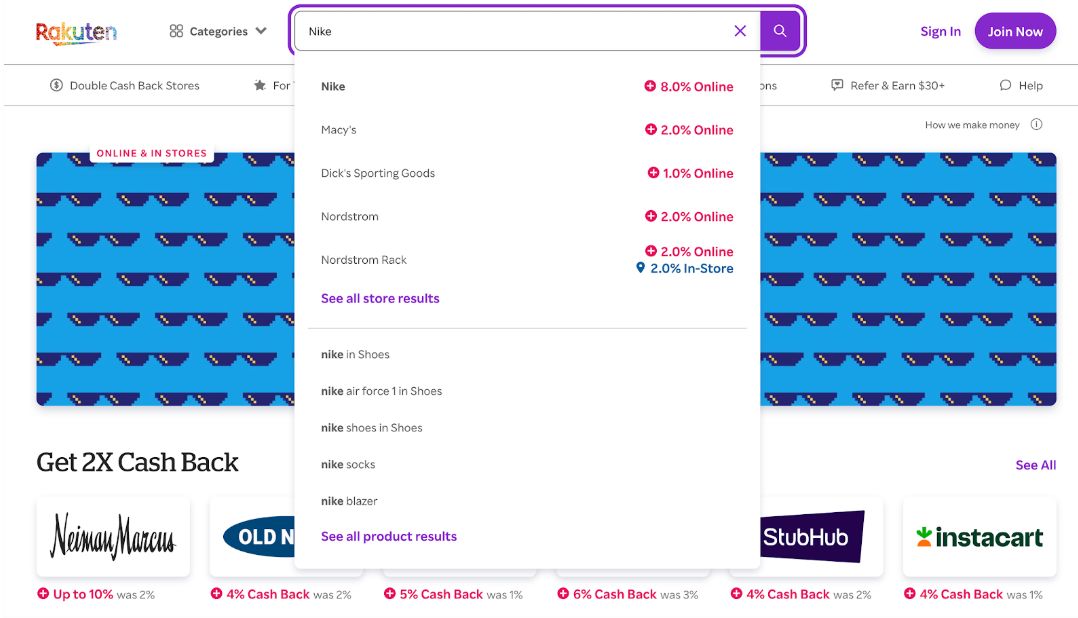 Давайте рассмотрим на живом примере оформление кешбэка для магазина, как пример возьмем Nike.