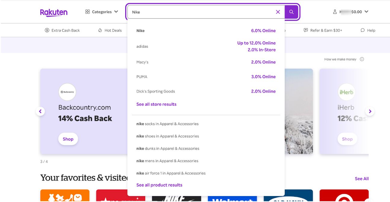 В строке поиска rakuten.com вбейте название магазина и перейдите на его сайт.