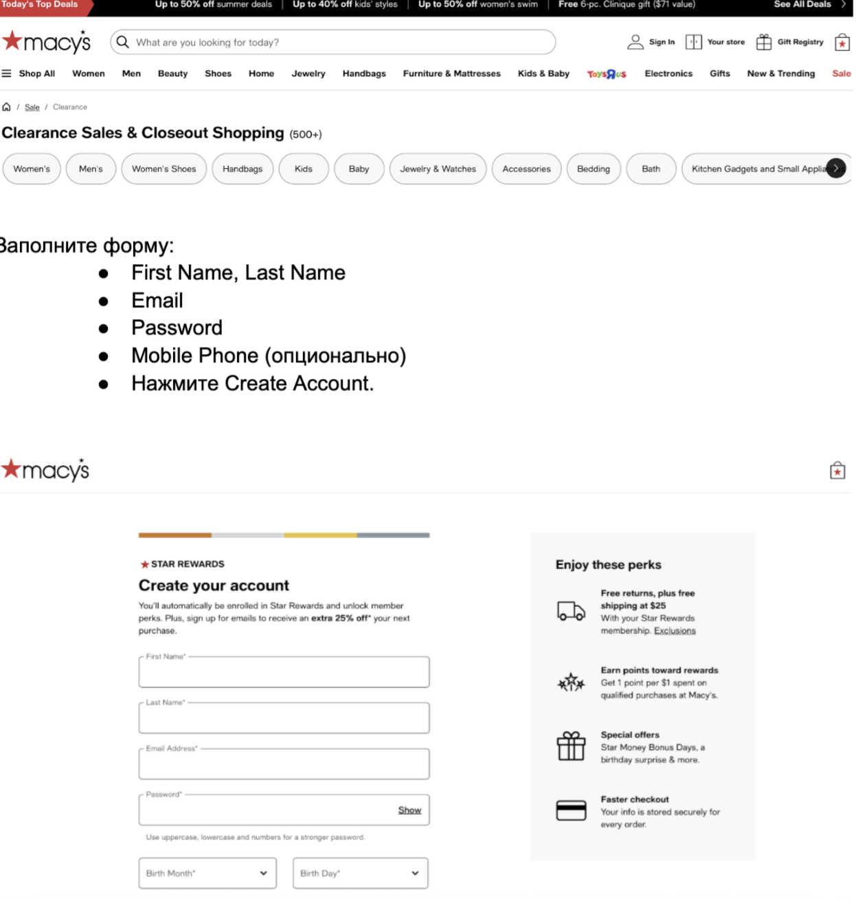 - Участие в программе Star Rewards (при использовании Macy’s Credit Card)