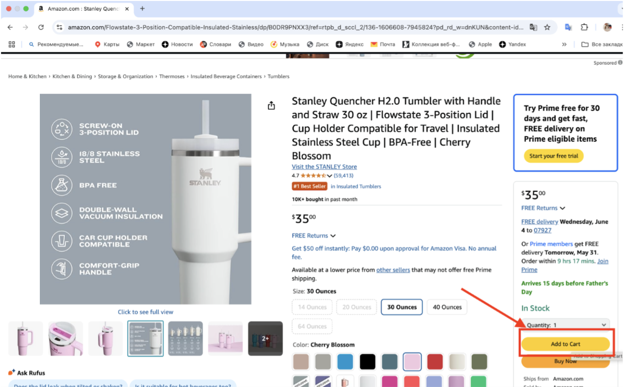 В качестве примера рассмотрим приобретение отличного подарка и самой модной кружки Stanley.