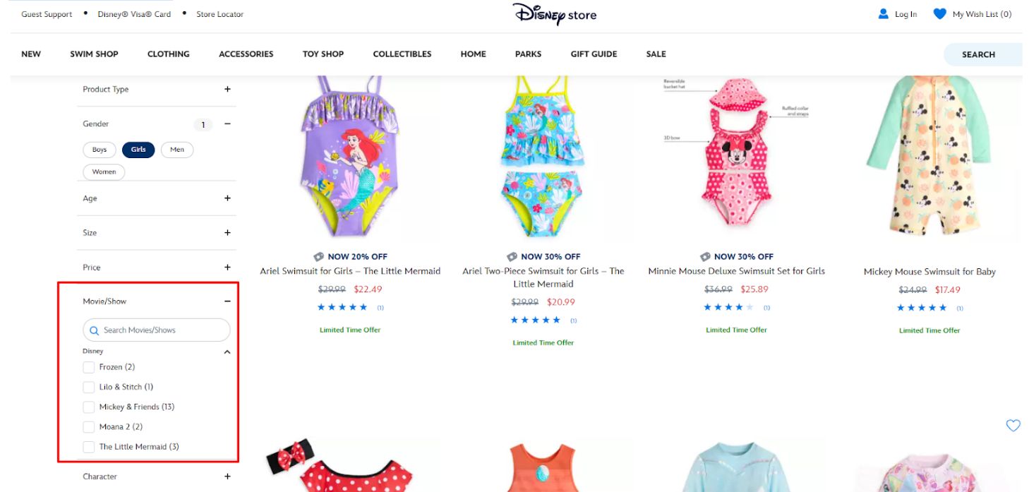 Перед нами открываются все доступные на данный момент коллекции. Слева вы можете выбрать дополнительные фильтры по цене, возрасту, мультгерою с которым должна быть одежда. Либо можем просто выбрать справа понравившийся нам набор.