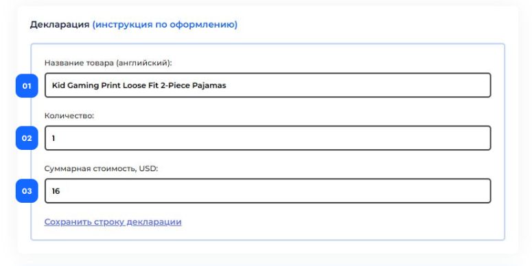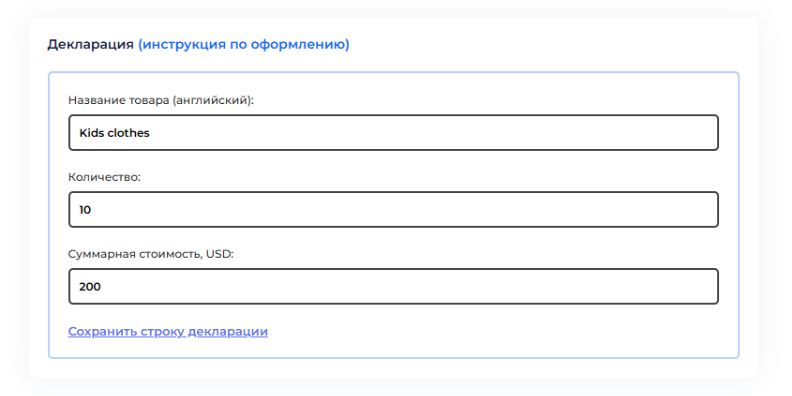 Чтобы правильно заполнить декларацию для тарифов Econom, Econom lite и EMS Russia, откройте страницу товара.