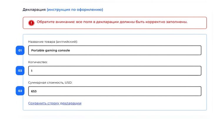 А если у вас в посылке 2 РАЗНЫЕ портативные консоли (например, Steam Deck и Nintendo Switch) – то каждую надо записать в отдельную строку декларации.