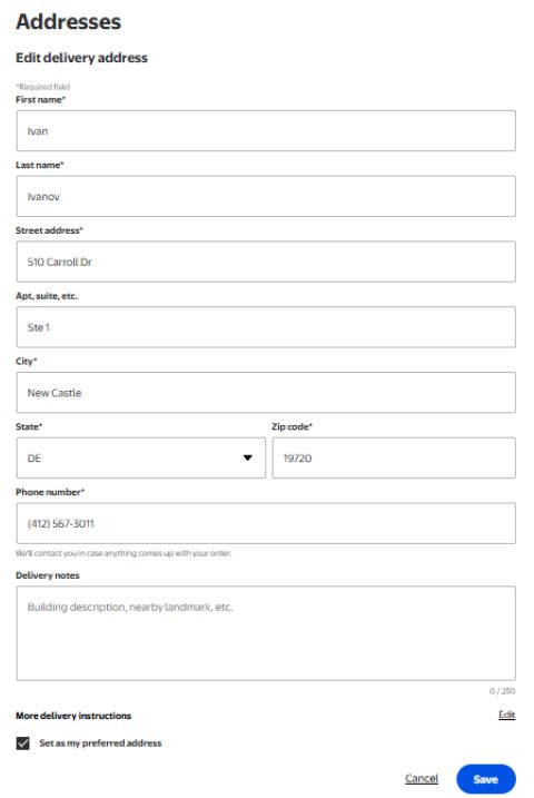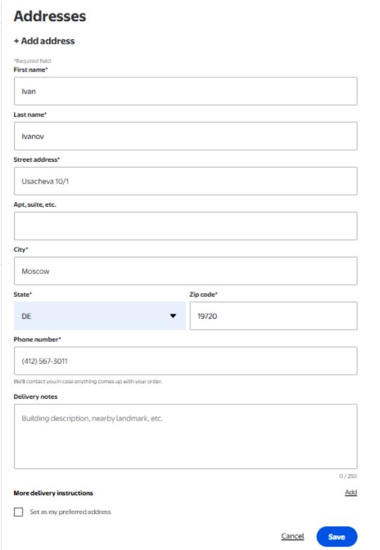 2. Добавьте адрес доставки